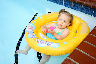 And this is Lucy's 1st official swim!!!! We just opened the pool on Friday and it was still FREEZING!!!! However we endured it anyway and Lucy liked it for the most part. When we pulled up she started squealing like it was her bath. I think the water was a bit shocking but she didn't even cry....yet.