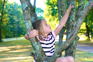 Lucy took a whopping 1 hour nap (divided) today folks...usually she sleeps three. Tired. Momma. So this afternoon I had to get out a little bit before I went crazy and it was GORGEOUS outside (70's and sunny this afternoon). We went for a walk and Karis decided to climb a tree. She was being brave. I miss out on opportunities to take pics of my K girl so I snapped away.