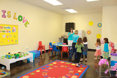 This is the new 2's-3's room. Now that we have room we were able to split up the kids groups some which allowed for an extra kid class. It was special to me because it meant Lucy got to move out of the baby room into a big kid room! Sniff, sniff