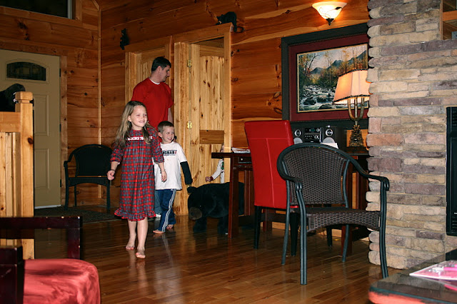 Christmas Eve morning we headed out at about 5 a.m. and headed for the mountains to have Christmas with the family in the mountains. We woke the kids up to go to the restroom and put them straight in the car and they stayed asleep for the first 2 hours of the trip. The kids were GREAT traveling and not so much as a whimper from even Lucy at age 2. It took us 7 1/2 hours with minimal stops and we were there!
