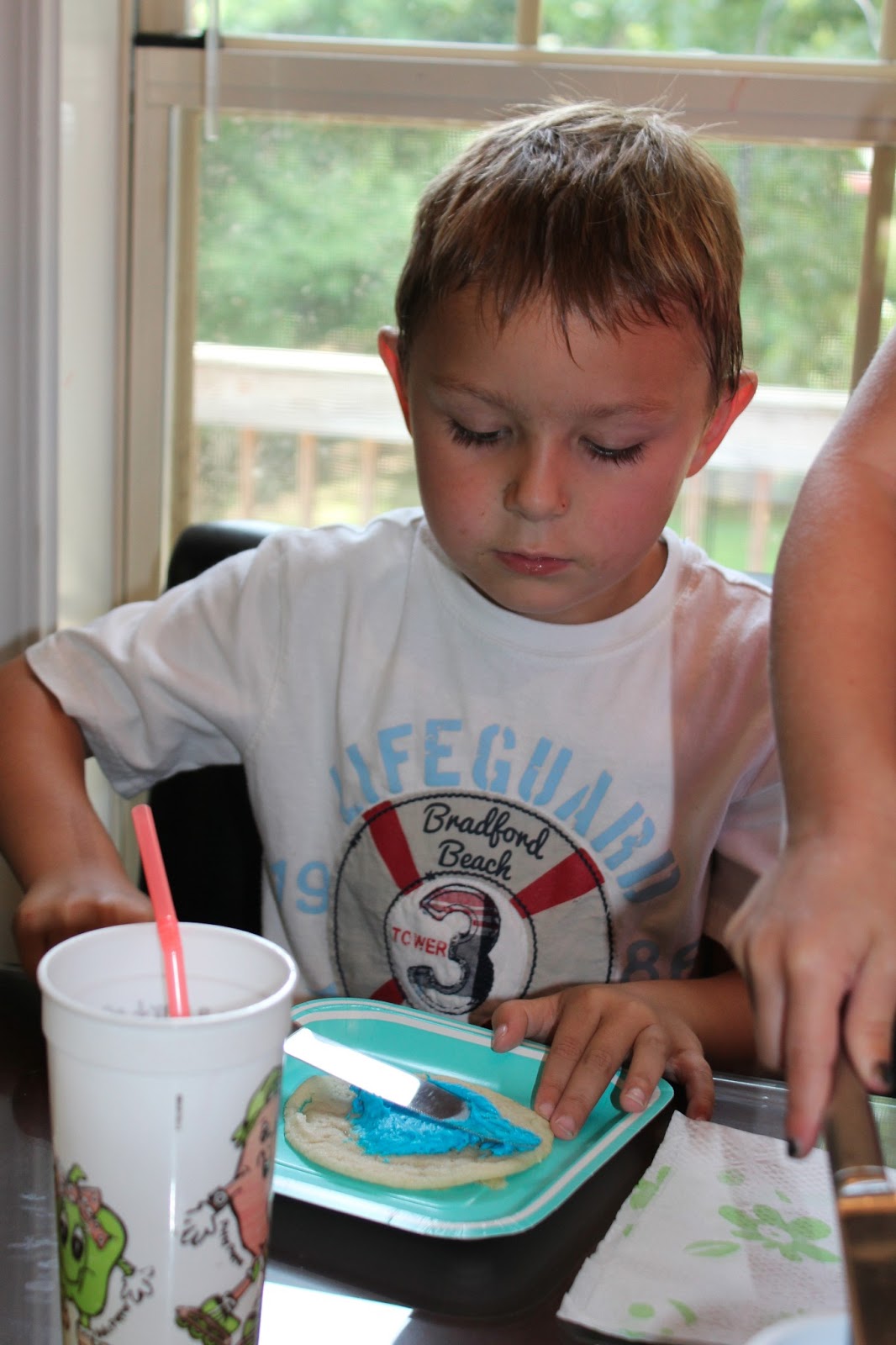 Instead of a cake, he wanted to decorate sugar cookies. SO by 10 a.m. we had had donuts for breakfast and iced sugar cookies...only a birthday allows for that much sugar! But hey it only comes once a year right?!